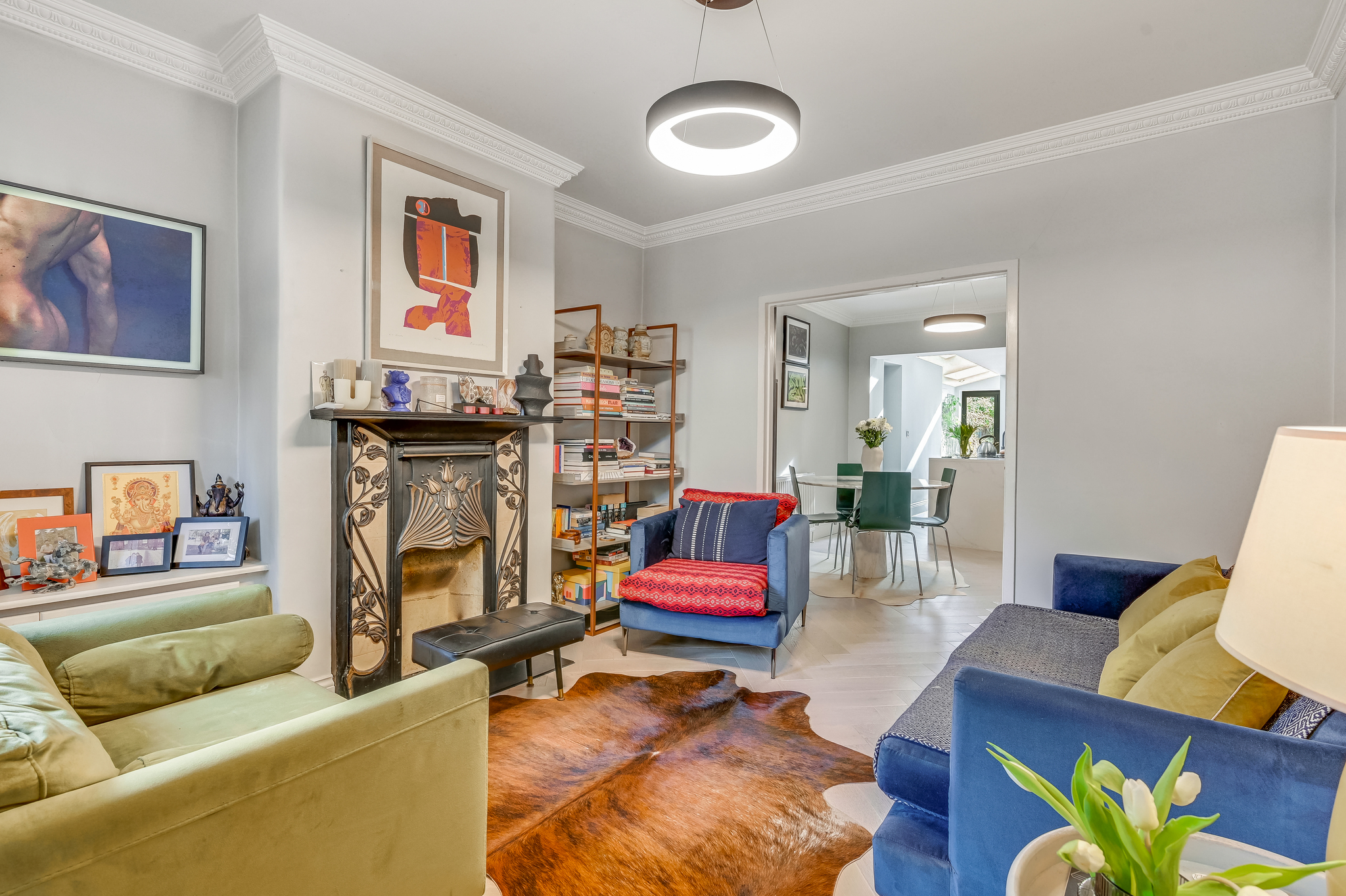 The front reception room provides a comfortable and characterful living space, complete with a feature fireplace and elegant proportions. This flows through to a superb open-plan kitchen and dining area, which has been extended to the rear to create a truly impressive hub of the home.