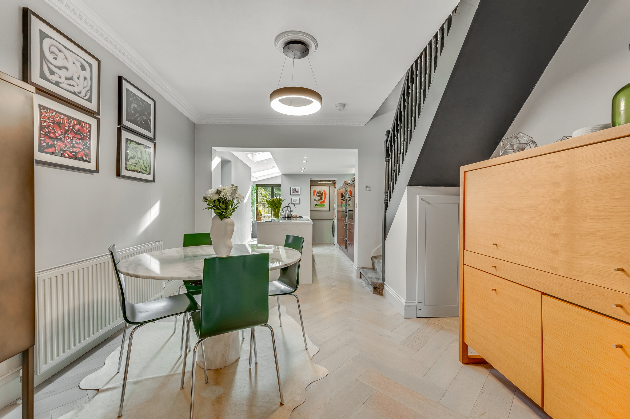 From the outset, the property retains its attractive period façade, while inside it delivers a striking contrast of modern finishes, clean architectural lines and an abundance of natural light.